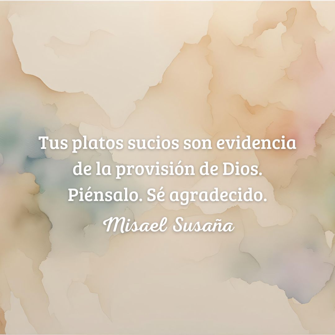 Platos sucios. «Tus platos sucios son evidencia de la provisión de Dios. Piénsalo. Sé agradecido» (Misael Susaña). Instagram