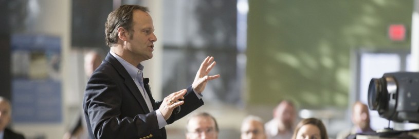 Orador en medio de una conferencia
