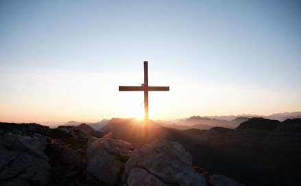 Cruz sobre roca a contra luz.