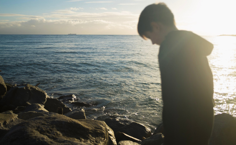 Hombre explorando costa