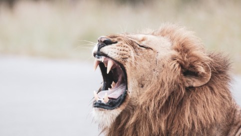 León marrón rugiendo.