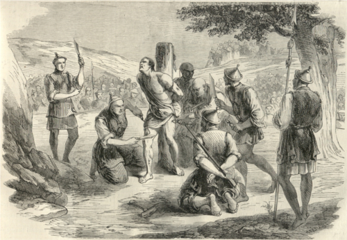 Supplice chinois in »Martyre du R. P. Chapedelaine et de ses compagnons», from http://www.dunwich.org/genea/fg/martyrerp.html