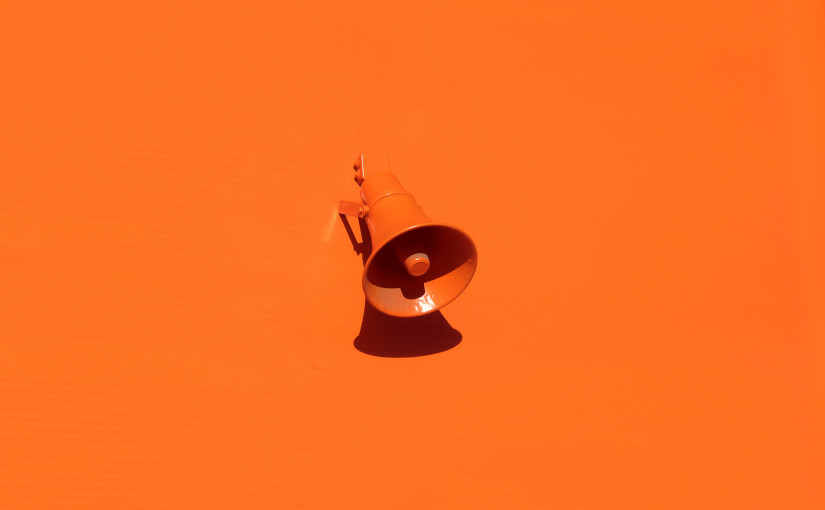 Megáfono color naranja sobre pared