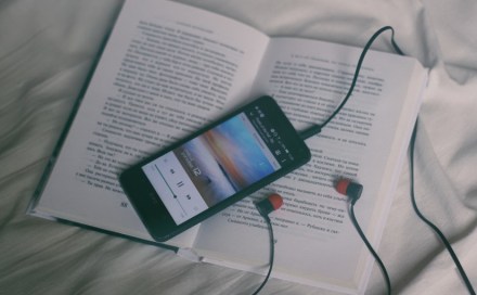 Celular inteligente sobre libro